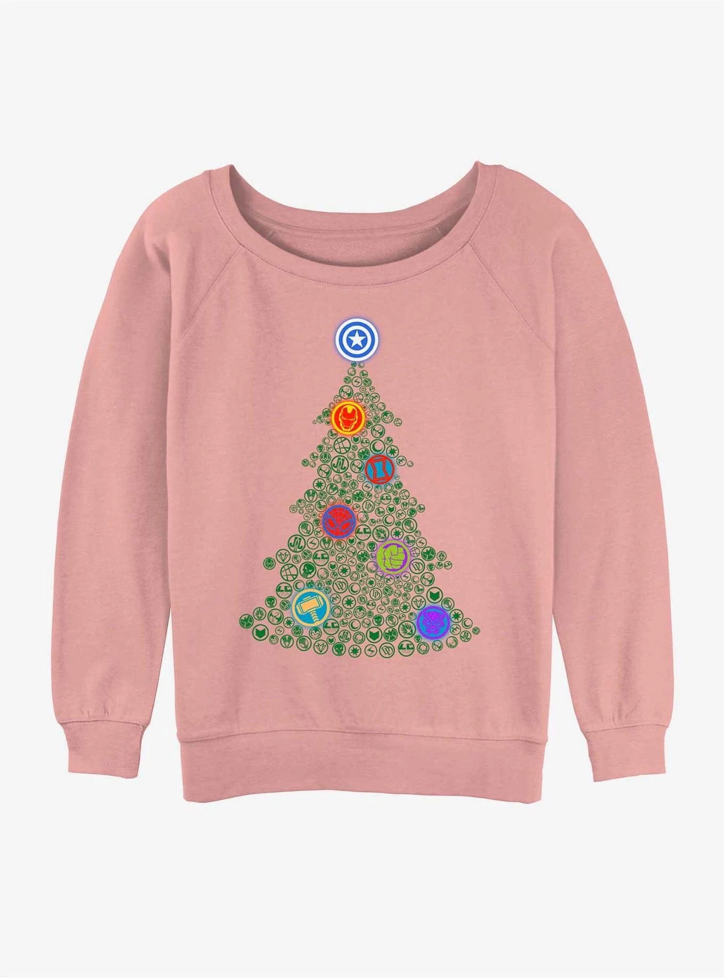Marvel Hero Icon Christmas Tree Girls Slouchy Sweatshirt