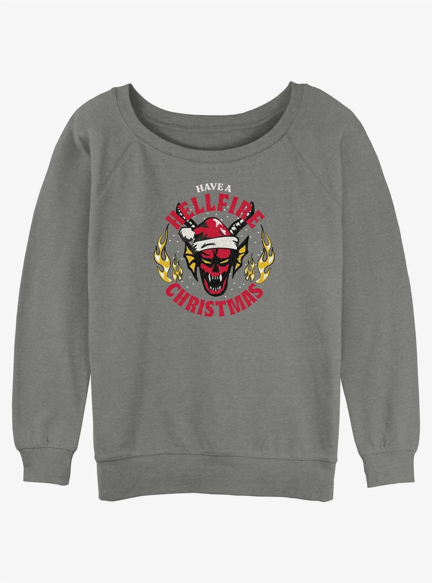 Stranger Things Hellfire Christmas Girls Slouchy Sweatshirt