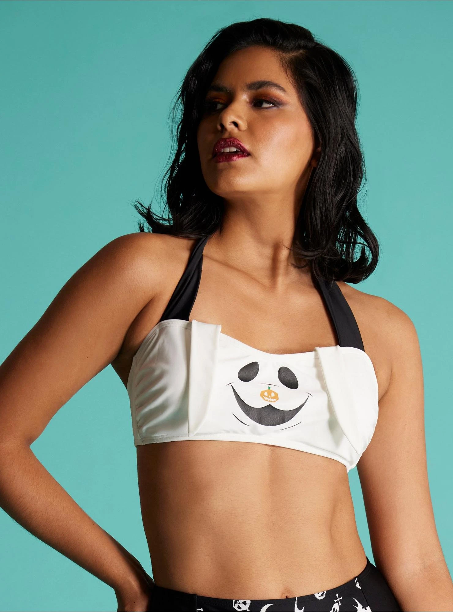 We’re counting on this ghost pup to guide us to the nearest beach! Lounge poolside with this The Nightmare Before Christmas halter swim top, featuring a print of Zero’s face and 3D ears. Comes with adjustable halter tie straps and removable padding. Pair with the matching bottoms to complete your look!