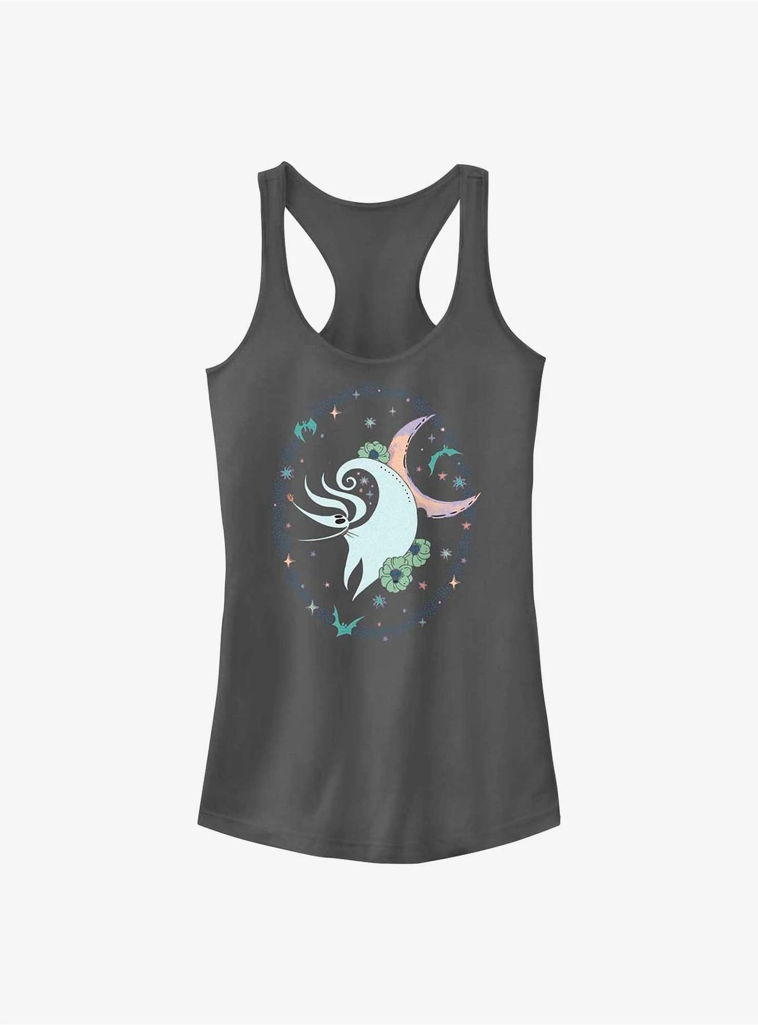 My, what a brilliant nose Zero has! This charcoal grey racerback tank — inspired by The Nightmare Before Christmas — features Jack’s ghost dog, Zero, lighting the way amongst stars, flowers, the moon and bats.